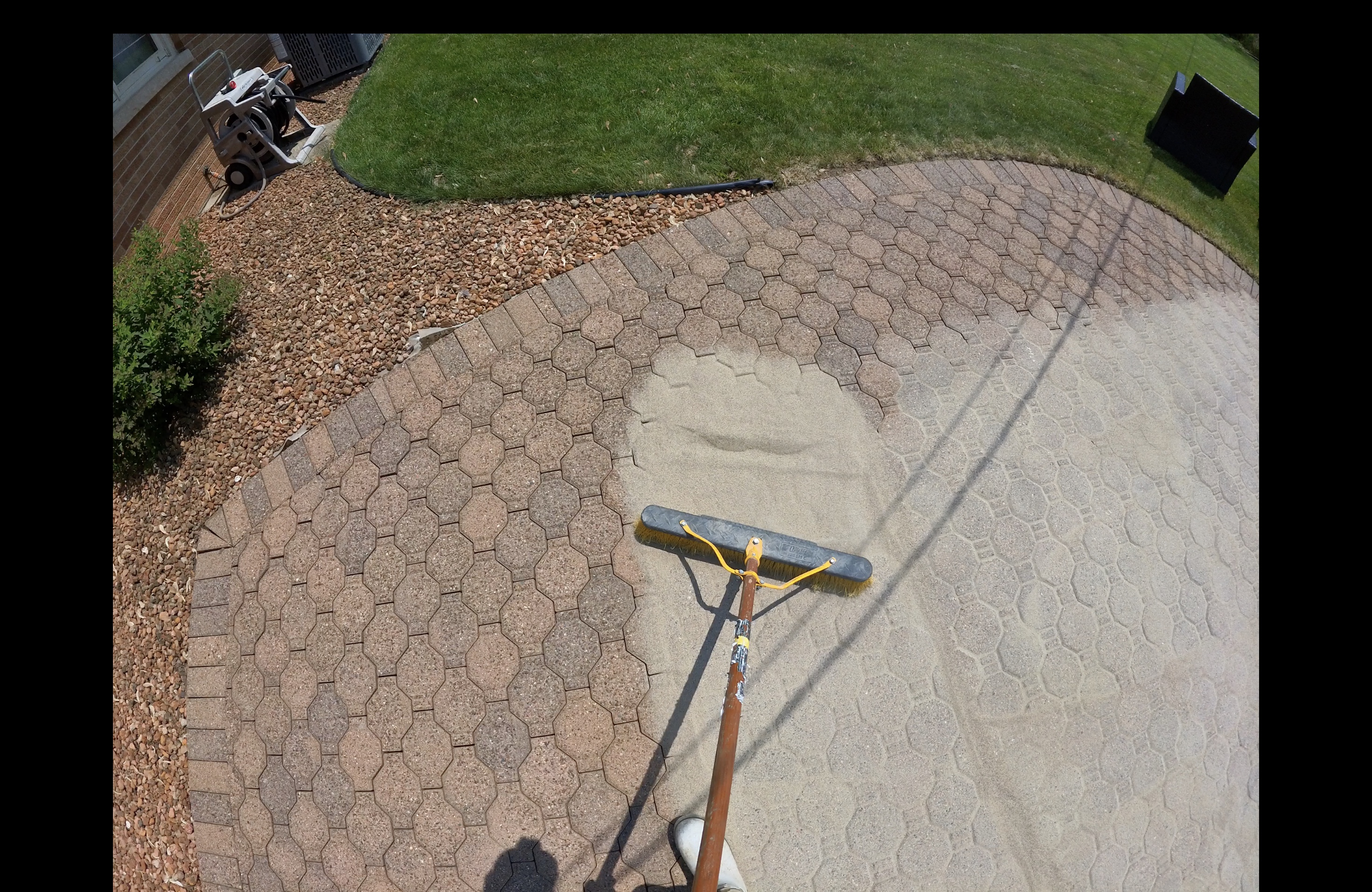 Extracting weed-filled sand and installing commercial-grade polymeric sand that hardens like concrete.